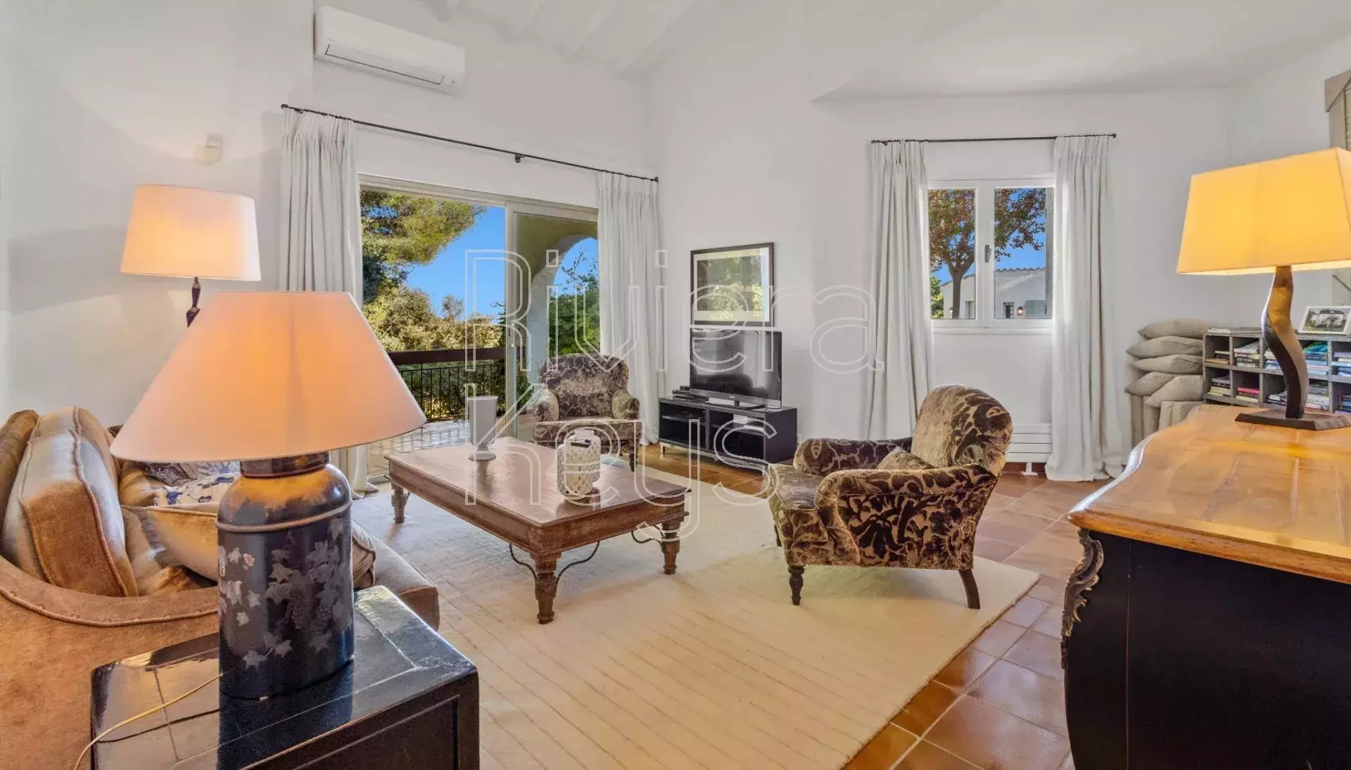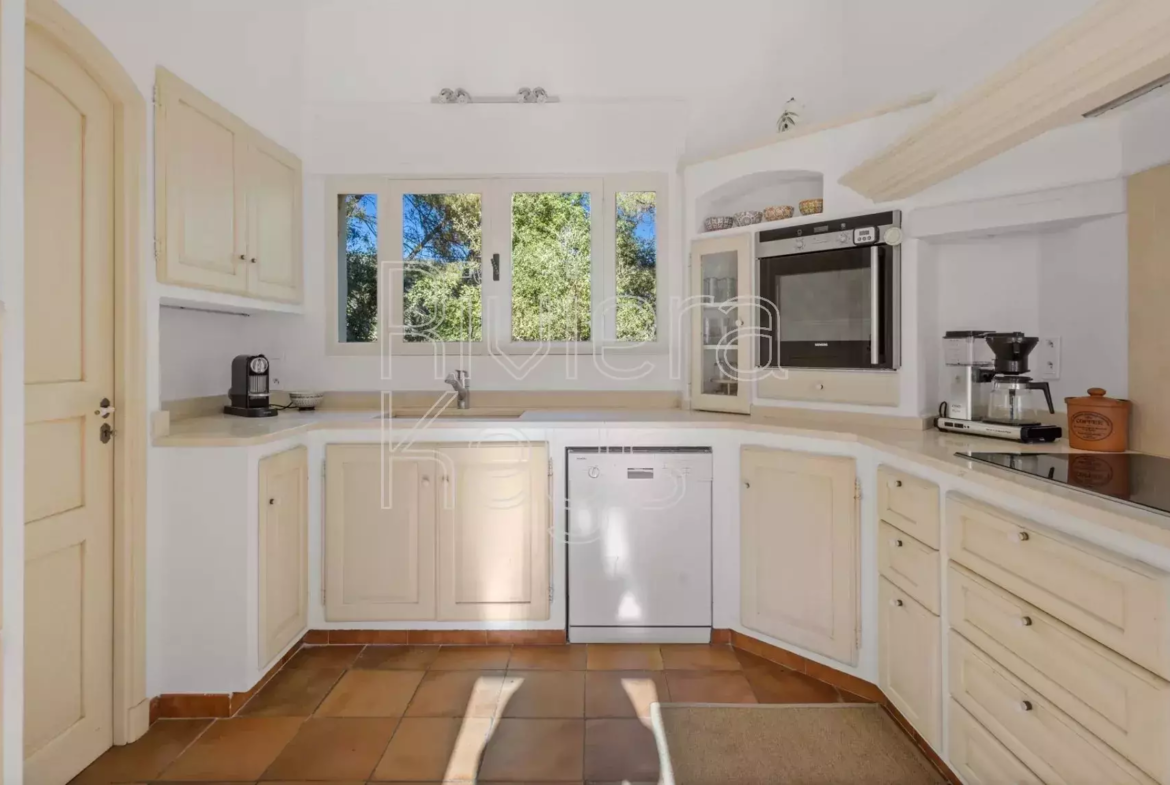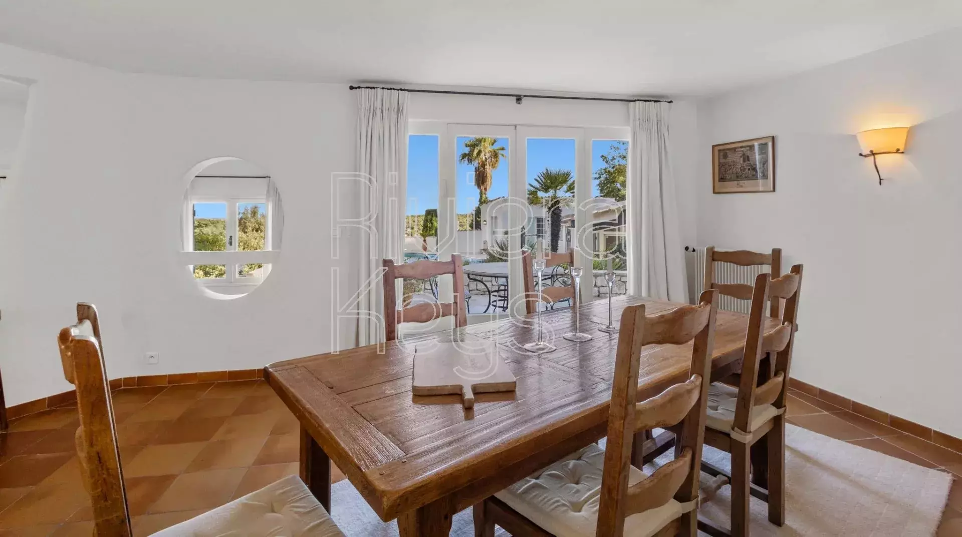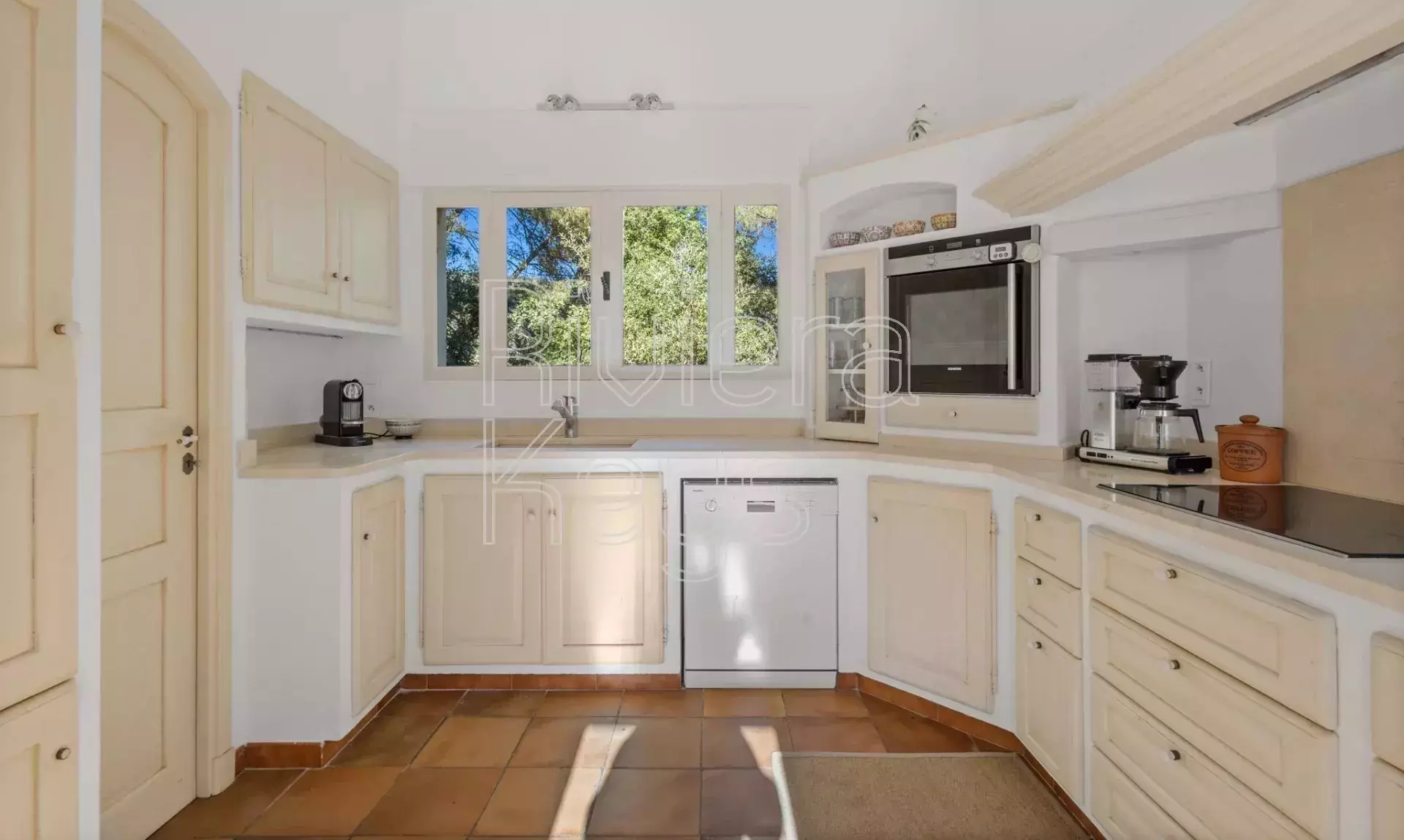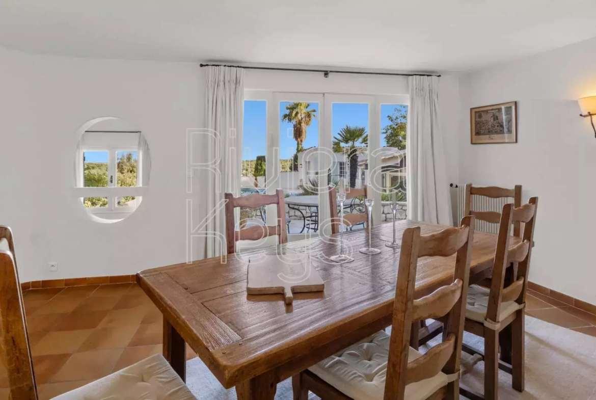 Päätalossa on korkea olohuone, ruokailutila, takkahuone, erillinen keittiö ja kolme makuuhuonetta, kolme kylpyhuonetta, joista kahdessa wc:t, kodinhoitohuone ja erillinen wc. Lisäksi 55 m2:n vierastalo, jossa kaksi makuuhuonetta. Kauniin uima-altaan laidalla on kesäkeittiö ja pool house. Pihalla on lisäksi autokatos ja petankikenttä.
