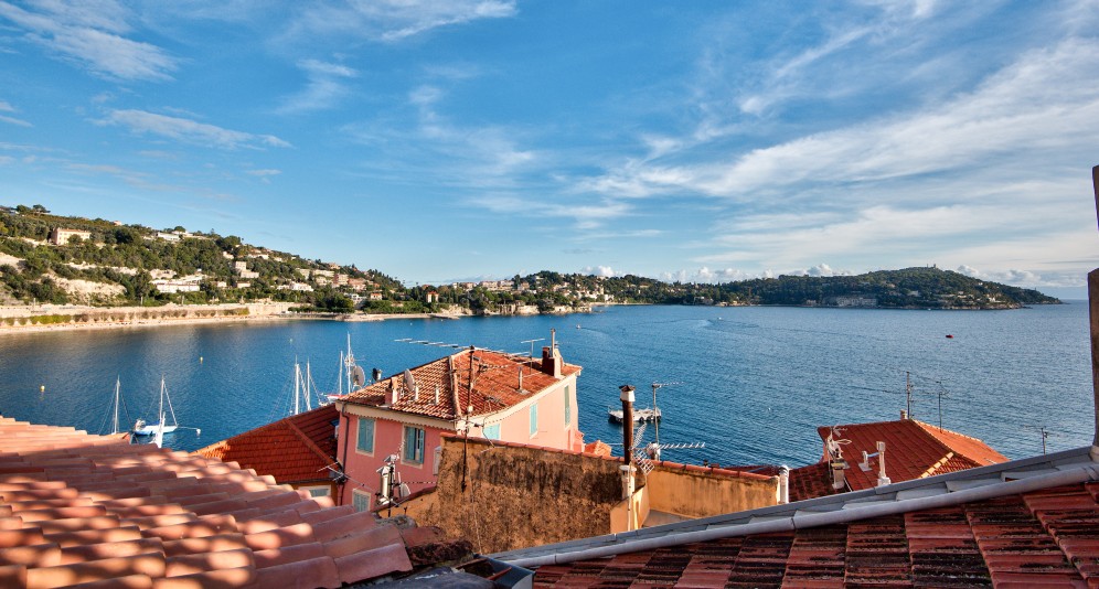 Villefranche-sur-Mer’n vanhan kaupungin sydämessä sijaitseva kaksikerroksinen. remontoitu asunto pienen talon ylimmässä kerroksessa, jolta upeat näkymät merelle.