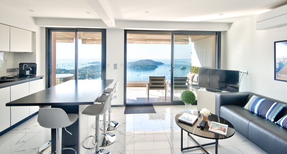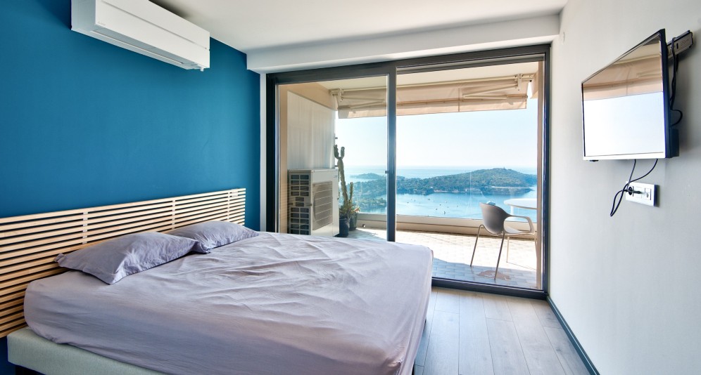 Villefranche-sur-Merin kukkulalla, hyvin arvostetulla paikalla sijaitseva, täysin remontoitu asunto, jossa voi nauttia huikeista panoraamanäkymistä merelle.