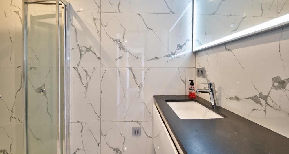 Asunnossa eteinen, valoisa olohuone, avokeittiö, kaksi makuuhuonetta, kylpyhuone ja erillinen wc. Oleskelutiloista ja päämakuuhuoneesta on käynti 20 m2:n terassille upeine näkymineen. Toisessa makuuhuoneessa on yläikkunat olohuoneeseen. Asuntoon kuuluu kellarivarasto ja autotalli. Lisäksi on mahdollista ostaa erillinen 20 m2:n huone omalla keittokomerolla ja kylpyhuoneella hintaan 38 000 e.