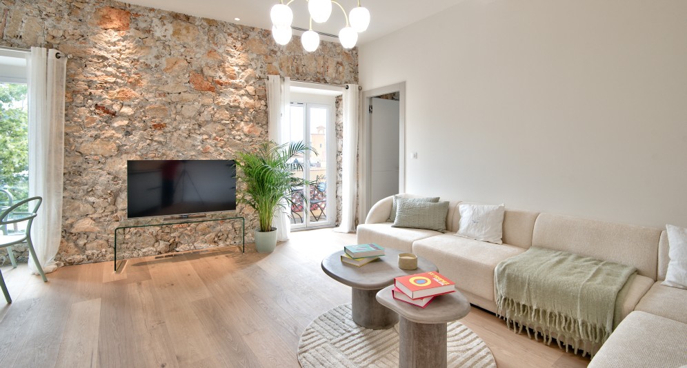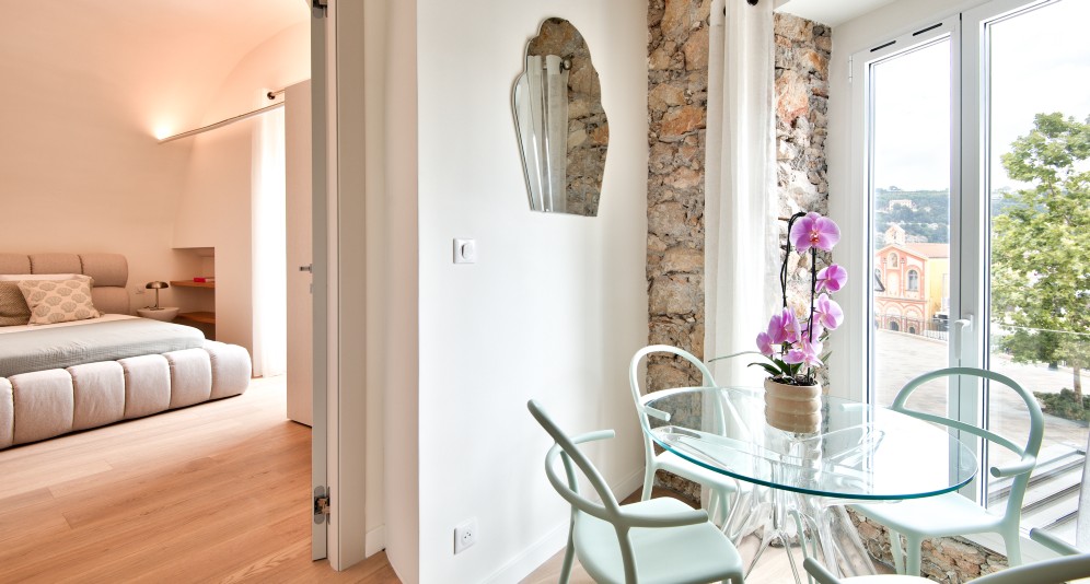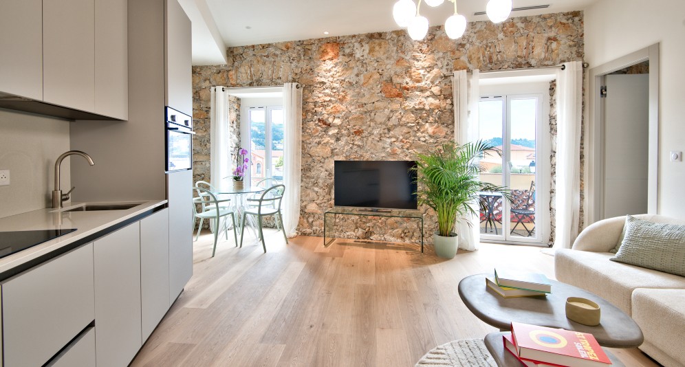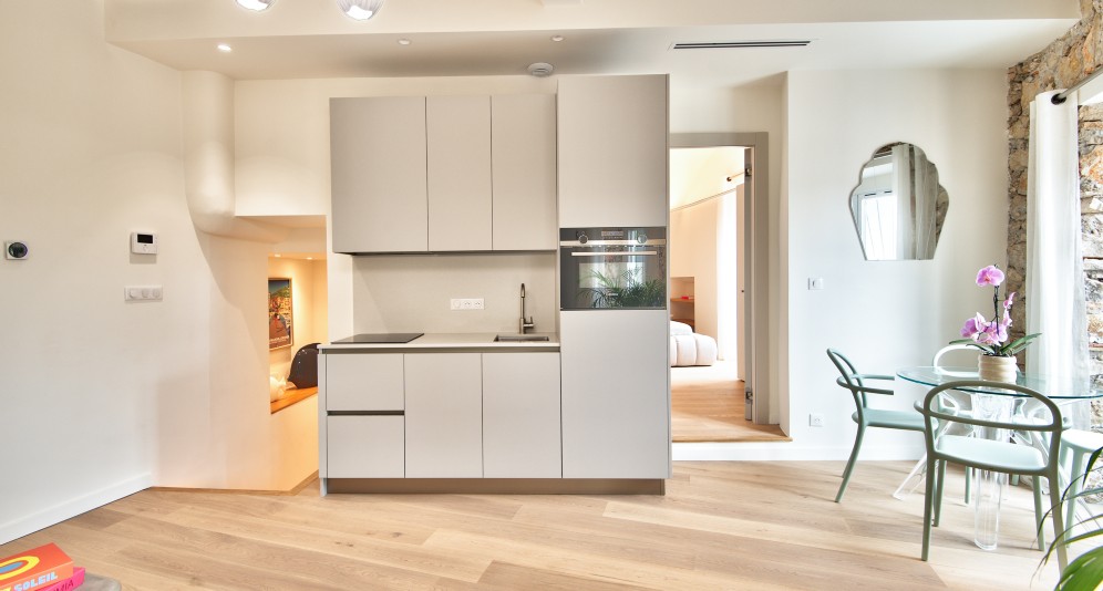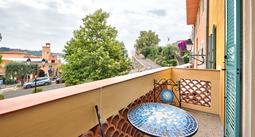 Villefranche-sur-Merin vanhassa kaupungissa sijaitseva, remontoitu asunto, jolta on kaunis näkymä aukiolle ja satamaan.
