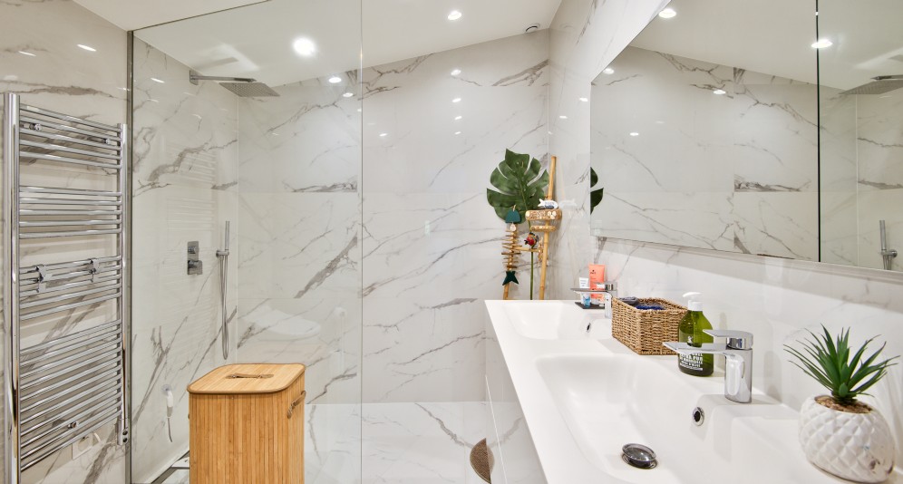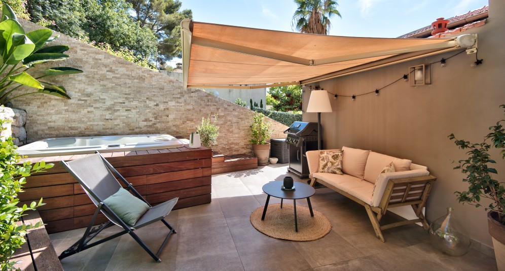 Asunnossa on eteinen, korkea olohuone, puoliavoin keittiö, kaksi makuuhuonetta, kylpyhuone, erillinen wc sekä viinikellari ja kodinhoitotila. Olohuoneessa ja toisessa makuuhuoneessa on korkeat ikkunat, jotka aukeavat kohti postikorttimaista merimaisemaa. Talon takana on viehättävä n. 50 m2:n terassi, jolla poreallas.
