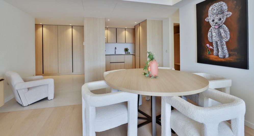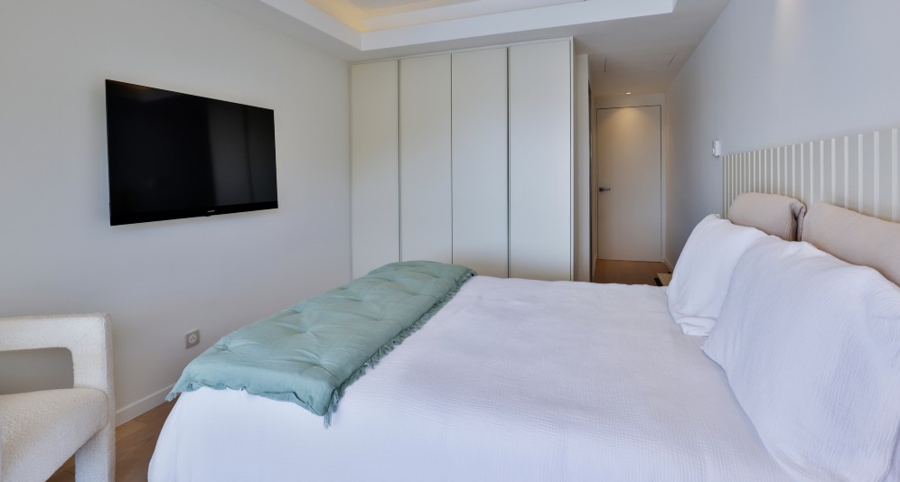 Asunnossa on eteinen, olohuone, avokeittiö, kaksi makuuhuonetta, kylpyhuone omilla kylpy- ja vaatehuoneillaan sekä erillinen wc. Kaikista huoneista on merinäkymät ja käynti upealle 40 m2:n terassille. Asuntoon kuuluu kellarivarasto ja parkkipaikka.