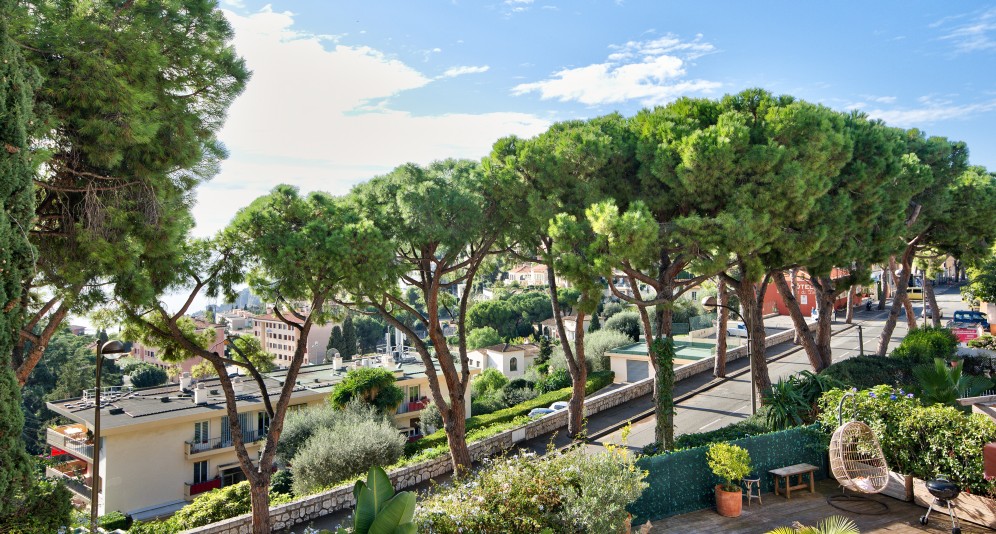 Villefranche-sur-Mer’n rinteellä, lähellä Col-de-Villefranchen palveluita sijaitseva, tunnelmallinen asunto, jolta kauniit näkymät merelle mäntyjen läpi.