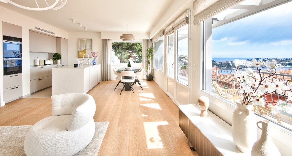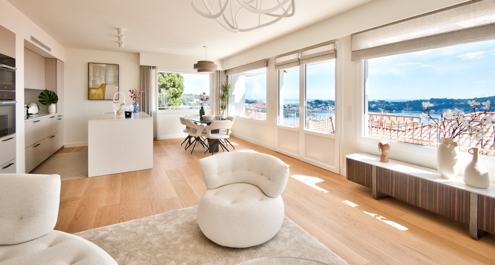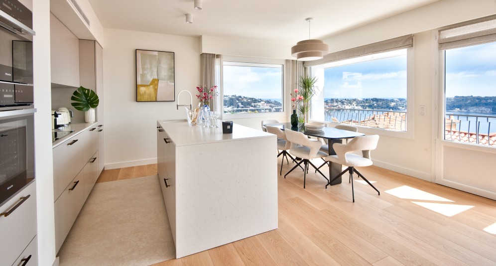 Villefranche-sur-Mer’n keskustassa, pienen taloyhtiön ylimmässä kerroksessa sijaitseva, täysin remontoitu asunto, jolta aukeaa postikorttimaisemat merelle ja Saint-Jean-Cap-Ferrat’lle.