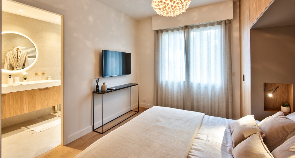 Kävelymatka rannalle ja keskustan palveluiden pariin. Hyvät julkiset kulkuyhteydet esim. Nizzan keskustaan.